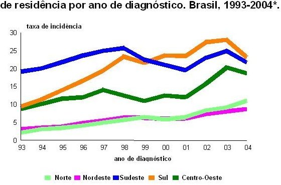 regiões Sudeste e Sul, as taxas de incidência nos