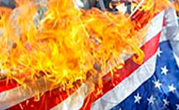 Sobre a queima de bandeiras dos EUA, Orlandi afirma que tais acontecimentos são paralelos a uma certa necessidade histórica das pessoas agarrarem-se a um símbolo para pertencer a algum lugar ou a alguma coisa. Na visão da lingüista, a recusa expressa na queima de bandeiras norte-americanas relaciona-se com a maneira como o imperialismo se desdobrou na globalização, como se resignificou nela e apagou fronteiras. Segundo ela, os EUA atribuíram-se a possibilidade de intervir em qualquer lugar onde julguem que a democracia está ameaçada, e essa atitude faz com que as pessoas entendam a bandeira norte-americana como uma invasão de território. “Isso já está significado no mundo e é uma maneira de atuar mais forte do que o imperialismo. Porque o imperialismo era econômico, tinha limites, ainda havia soberania nacional. A queima da bandeira é também uma recusa dessa atuação norte-americana. Isso se torna ainda mais complexo com a criação de um discurso de confronto entre ocidente e oriente, entre muçulmanos e cristãos, uma guerra santa. Esses desdobramentos carregam esses sentidos negativos dos EUA”, explica Orlandi.