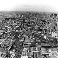 urbano tradicional cortado por gigantescos sistemas de vias expressas: